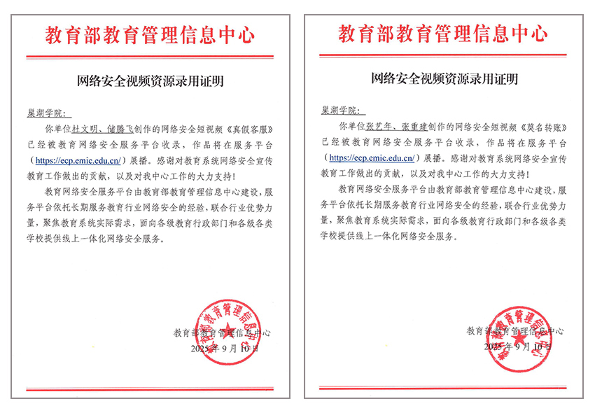 • 巢湖學院兩部網(wǎng)絡安全教育作品獲教育部教育管理信息中心錄用